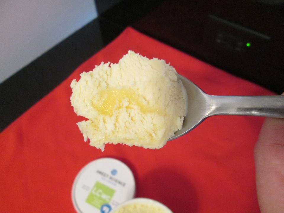 This is a very good implementation of salted caramel. It is of the 'extra salty' variety. So, stay hydrated and perhaps crank up the power on the freezer if you plan on storing it for a long time. The taste is excellent, though. Extra salty salted caramel lovers will love this.